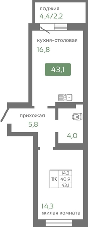 Продам 1-комнатную 43.1 кв.м. 5/19 этаж, монолит-кирпич, Красноярск, Норильская ул, 64.