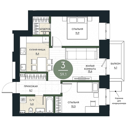 Планировка доступна в домах 1, 2, 3, 4, 5, 6 на этажах 2–17.