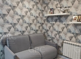 Квартира распланирована на кухню-гостиную, комнату, санузел и кладовку.