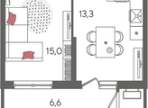 В продаже 1-комнатная квартира от застройщика! ЖК «Рекорд» 2 очередь, г. Краснодар, Литер 6 Срок сдачи: 4 кв. 2026, общей площадью 44.6 кв.м., на 24 этаже.