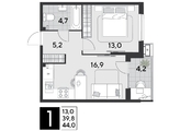 Срок сдачи: 1 кв. 2026, общей площадью 44 кв.м., на 2 этаже.