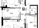 В продаже 3-комнатная квартира от застройщика! Мкр. «DOGMA PARK» г. Краснодар, Литер 16 Срок сдачи: 4 кв. 2027, общей площадью 70 кв.м., на 7 этаже.