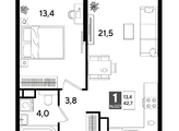 В продаже 1-комнатная квартира от застройщика! Мкр. «DOGMA PARK» г. Краснодар, Литер 17 Срок сдачи: 4 кв. 2027, общей площадью 41.2 кв.м., на 16 этаже.