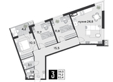 Срок сдачи: 1 кв. 2026, общей площадью 83.4 кв.м., на 15 этаже.