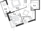 Срок сдачи: 1 кв. 2026, общей площадью 63.2 кв.м., на 8 этаже.