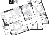 Срок сдачи: 1 кв. 2026, общей площадью 94.7 кв.м., на 3 этаже.